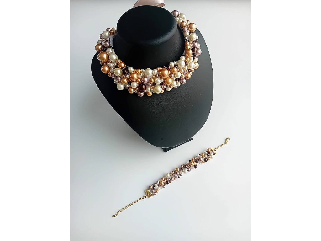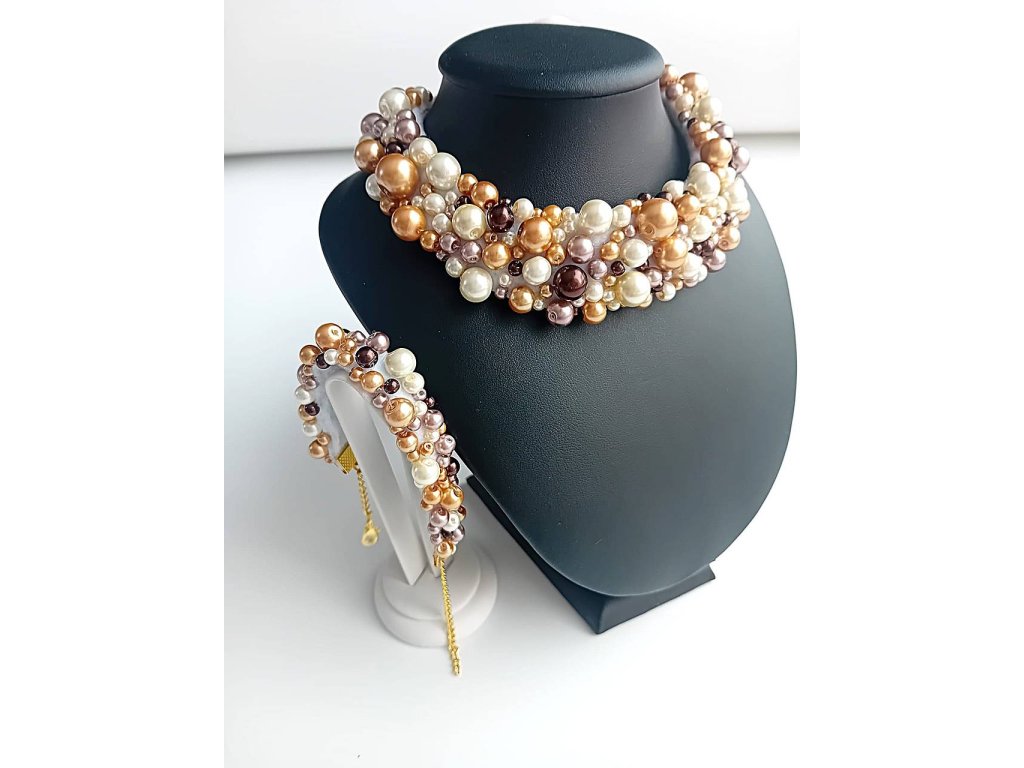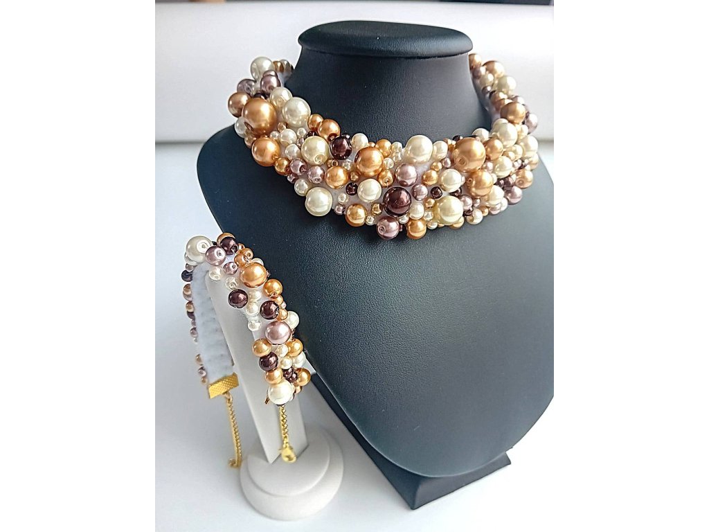 Elegantný ručne vyrábaný perlový set, ktorý zaujme bohatým objemom a jemným farebným ladením.
